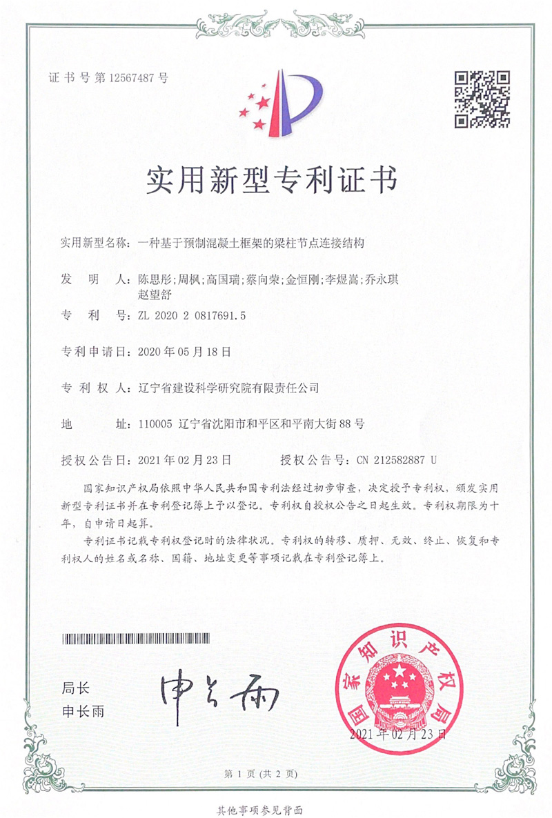 綠色土木建筑學(xué)會(huì)科技創(chuàng)新二等獎(jiǎng)