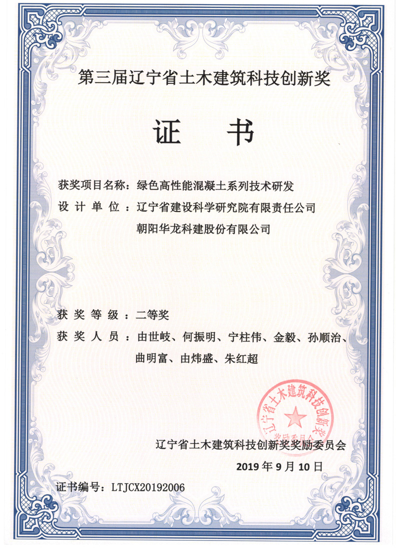 綠色高性能土木建筑學(xué)會(huì)科技創(chuàng)新二等獎(jiǎng)