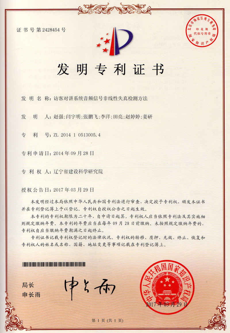 2017-訪客對講系統(tǒng)音頻信號非線性失真檢測方法